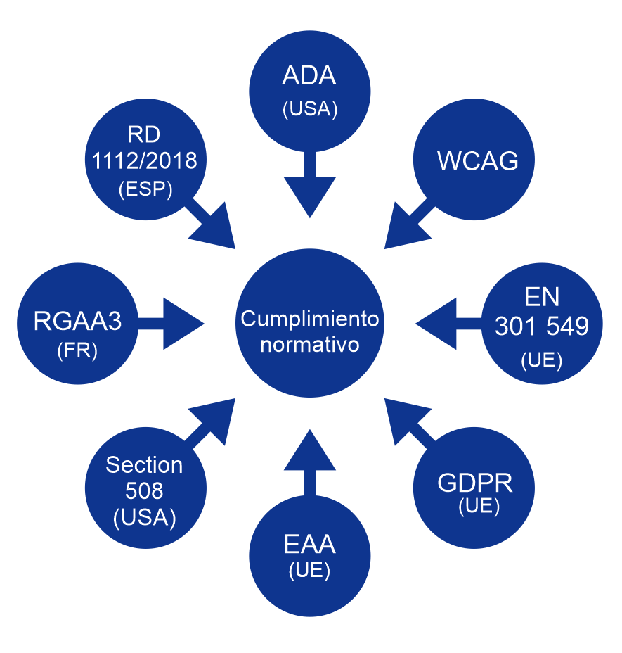 Nuestro Widget te ayuda a cumplir con las normativas mexicanas igual que ayuda con la Normativa Europea EAA y la UNE-EN 301549:2022 y con diferentes estándares de Accesibilidad entre los que se encuentran WCAG 2.2 nivel AA, ADA (USA), EA (UK), EN 301549 (EU), RGAA 3 (Francia) entre otros.